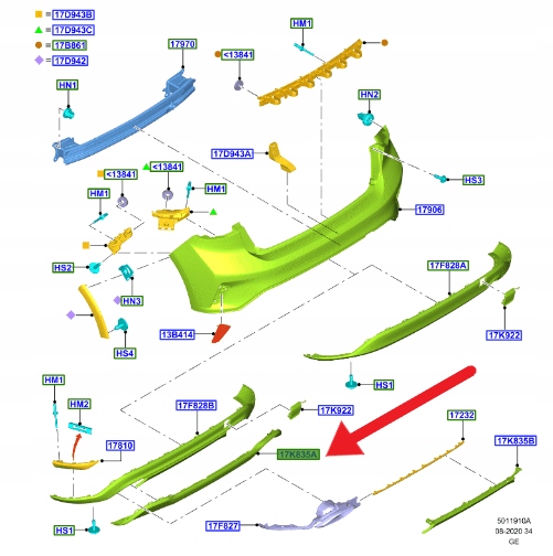 SPOJLER ZDERZAKA TYŁ FORD FOCUS HATCHBACK 2018- 2351357 _ JX7B-17D781-UB