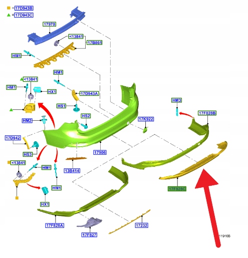 SPOJLER ZDERZAKA TYŁ FORD FOCUS KOMBI 2018- OE 2351352 _ JX7B-N17D781-JB
