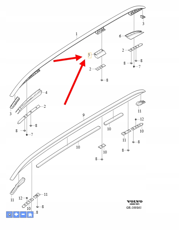 ŚRODKOWA ZAŚLEPKA PRAWFO RELINGU DACHU VOLVO XC90 2016- OEM/OE 31391905