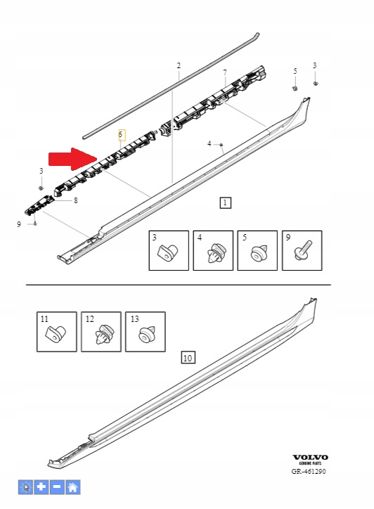 - ŚRODKOWY LEWY WSPORNIK NAKŁADKI PROGU VOLVO V60 S60 2019- OE 32262698