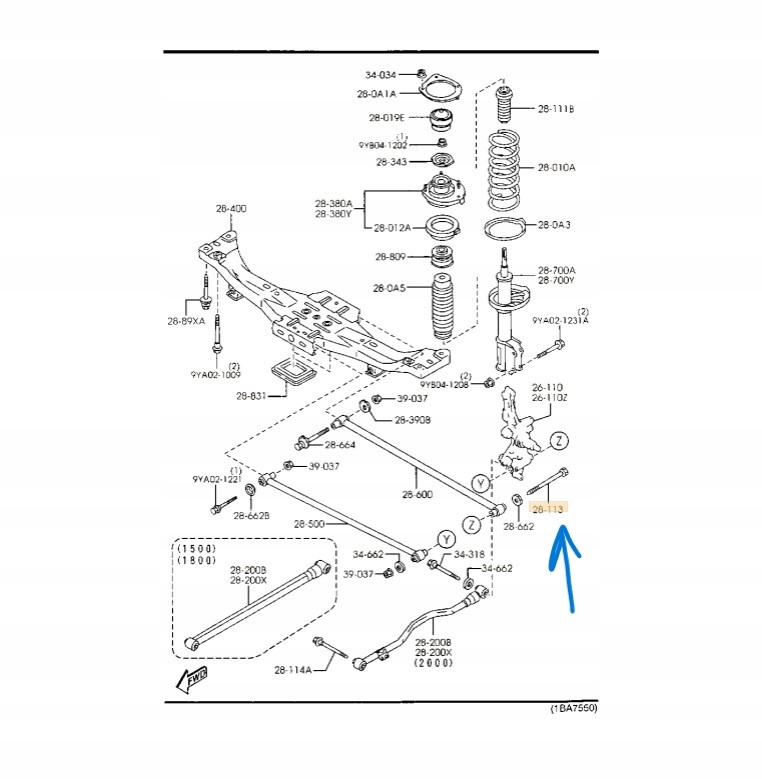 Śruba wahacza drążka zwrotnicy -Mazda 323 626 MX-6_GA2A28113A