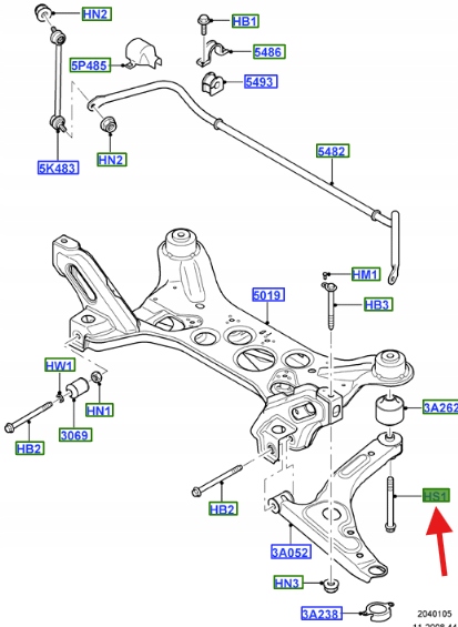 ŚRUBA WAHACZA PRZÓD FORD TRANSIT 2006-2014 1386614 _ W711077-S440