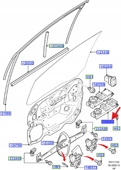 STEROWANIE SZYB LEWA STR. FOCUS 2004-07 1473748 _ 3M5T-14A132-AF