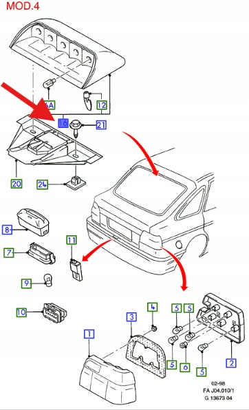 ŚWIATŁO STOP FORD ESCORT 1997- 2001 OE 1057326 _ 98AG-13N408-ED