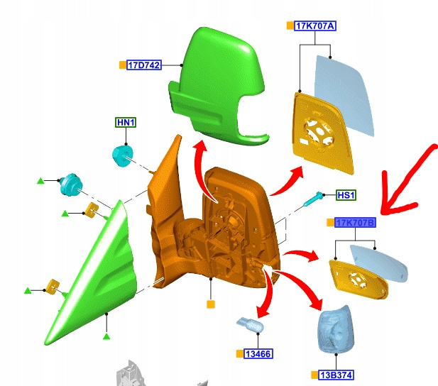 SZKŁO DOLNE LUSTERKA PRAWEGO FORD TRANSIT 2014- 2019- OE