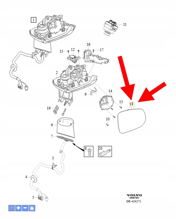 SZKŁO WKŁAD LUSTERKA LEWEGO VOLVO XC90 2016- OEM/OE 31395523