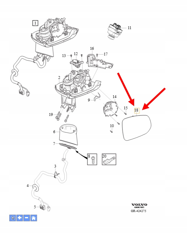 SZKŁO WKŁAD LUSTERKA LEWEGO VOLVO XC90 2016- OEM/OE 31395527