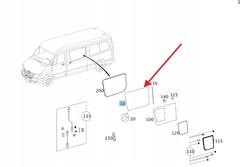 Szyba boczna prawa Mercedes Sprinter W906 A9067350309