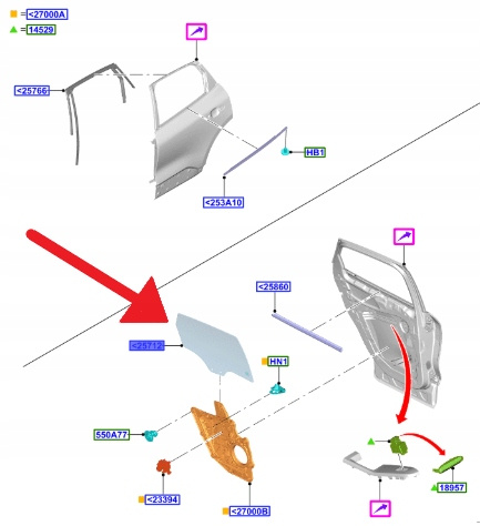 SZYBA CIEMNA DRZWI LEWY TYŁ FORD KUGA 2020- 2685783 _ LV4B-S25713-AD