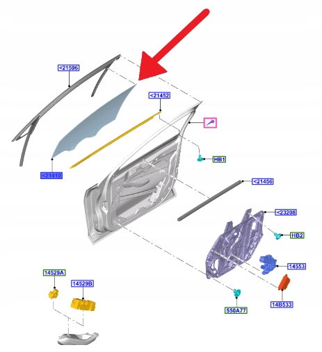 SZYBA DRZWI LEWY PRZÓD FORD FOCUS 2018- OE 2453922 _ JX7B-A21411-DB