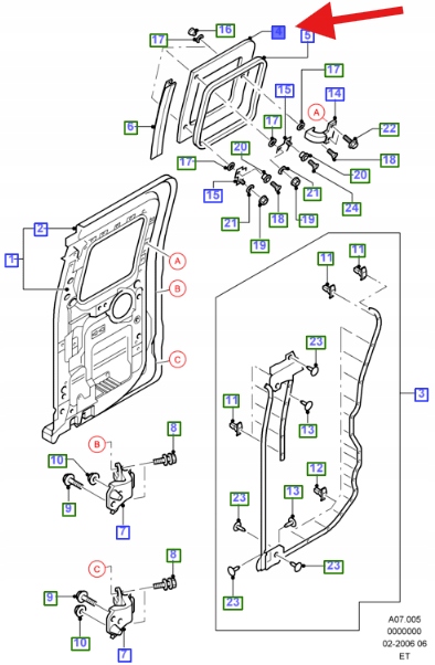 SZYBA DRZWI LEWY TYŁ FORD RANGER 2006- OE 1453477 _ 6M34-J29711-AA