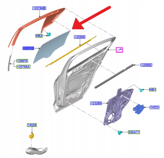 SZYBA DRZWI PRAWY TYŁ FORD FOCUS SEDAN 2018- OE 2206583 _ JX7B-A25712-BA