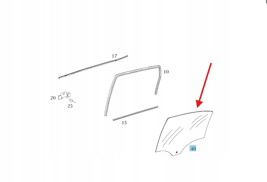 SZYBA DRZWI PRAWY TYŁ MERCEDES W169 A1697350210
