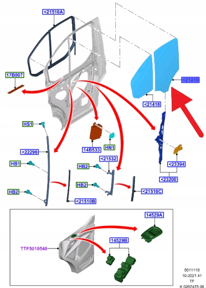 SZYBA DRZWI PRZEDNICH PRAWA TRANSIT CUSTOM 2012- 2512572 _ KK21-V21410-AB