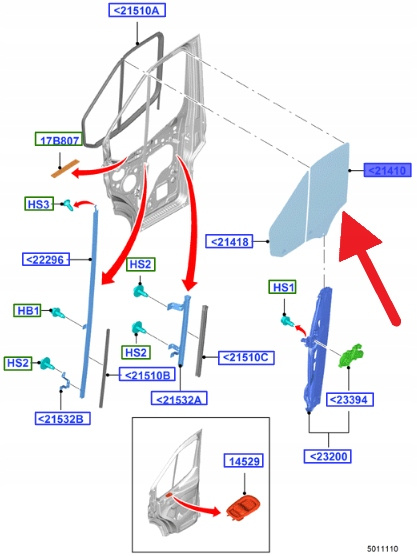 SZYBA DRZWI PRZÓD PRAWA FORD TRANSIT 2014- 19- OE 2457689 _ KK31-V21410-AA