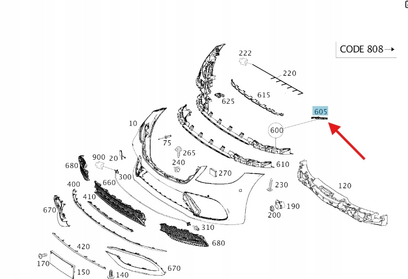 SZYNA ŚLIZG ZDERZAKA PRZÓD PRAWY MERCEDES S klasa W222 OE A2228850121