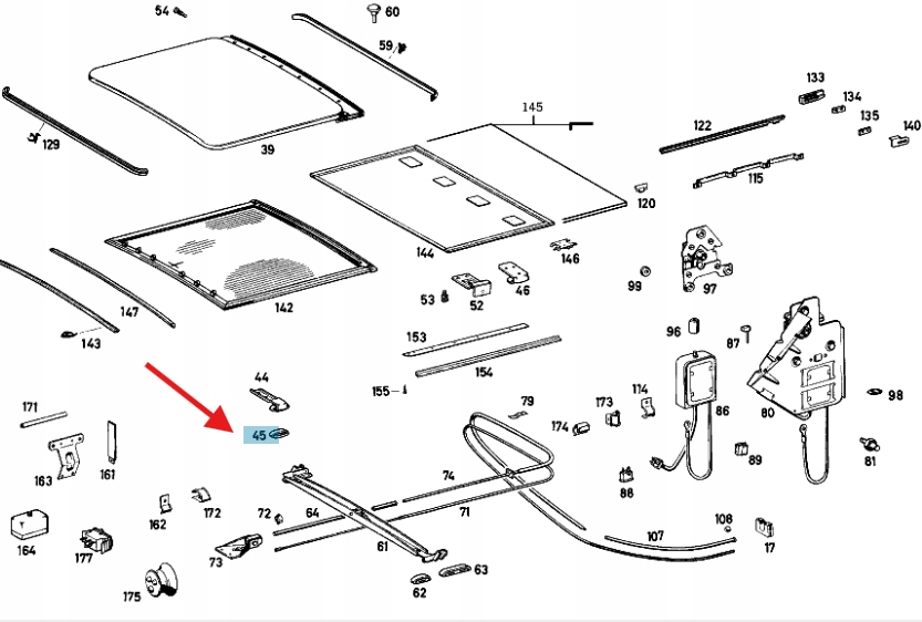 SZYNA ŚLIZGOWA SZYBERDACHU MERCEDES W126 W123 W116 W115 OE A1157800083