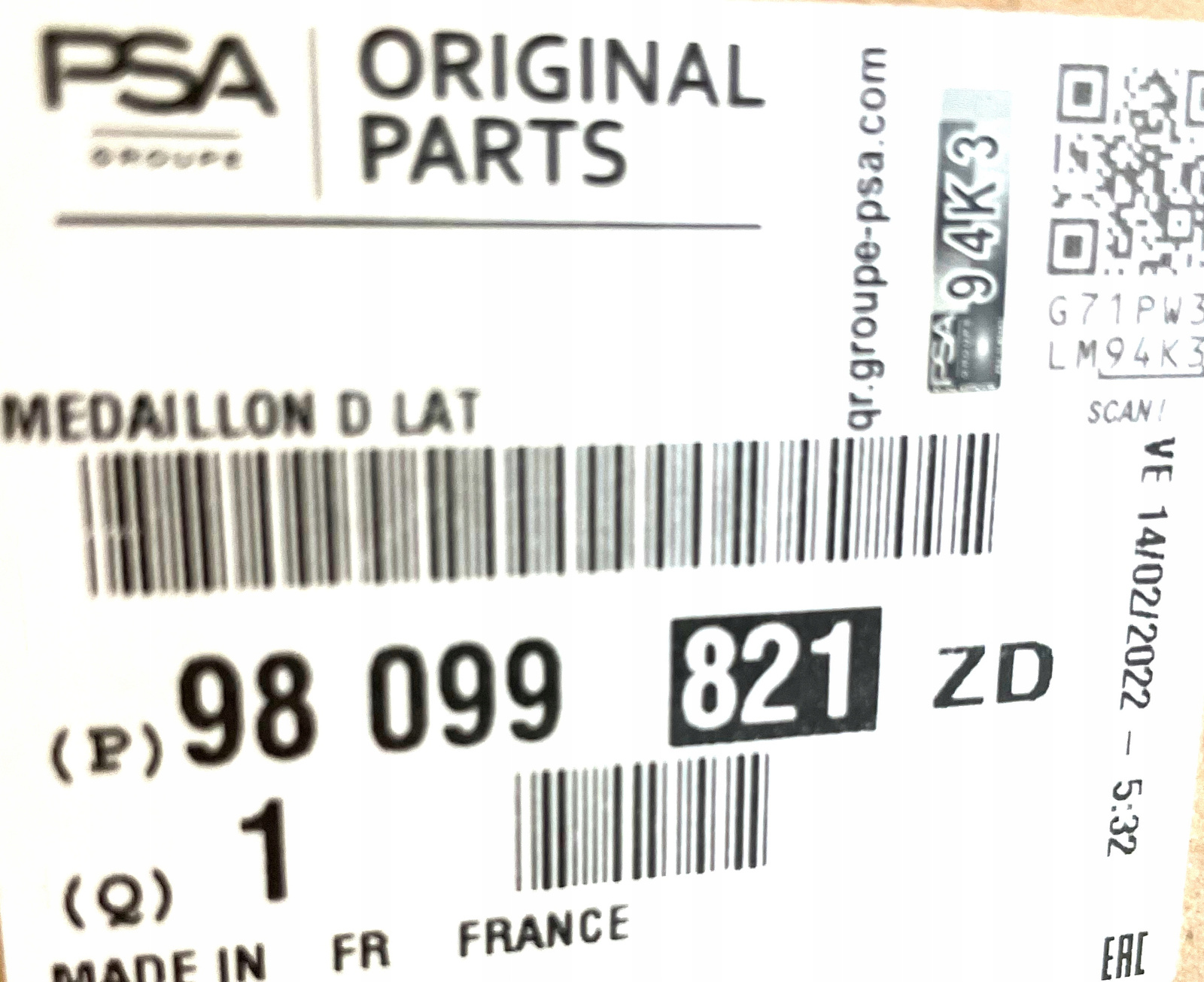 Tabliczka płata drzwiowego prawa Citroen OE 98099821ZD