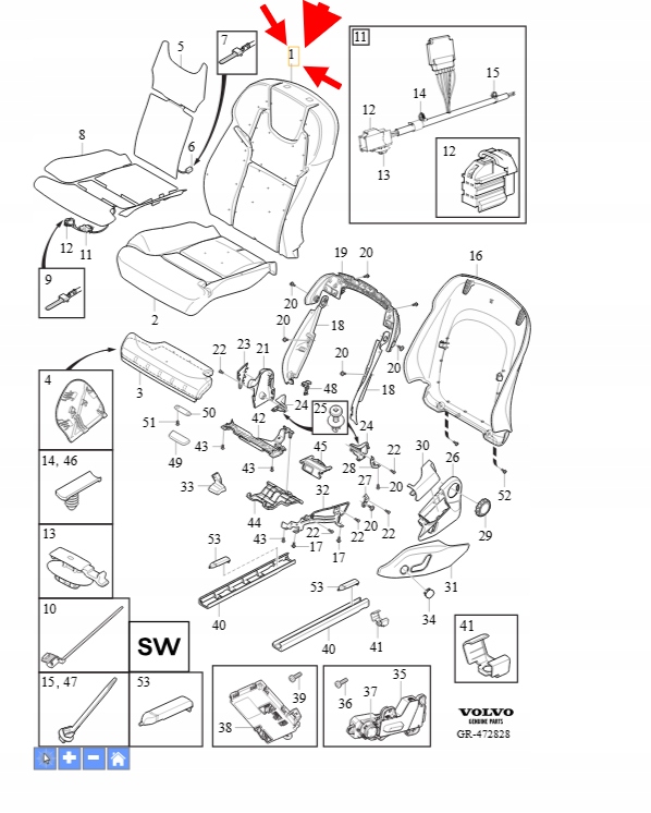 TAPICERKA OPARCIA FOTELA PRZÓD VOLVO XC90 2016- XC60 S90 OEM/OE 31377308
