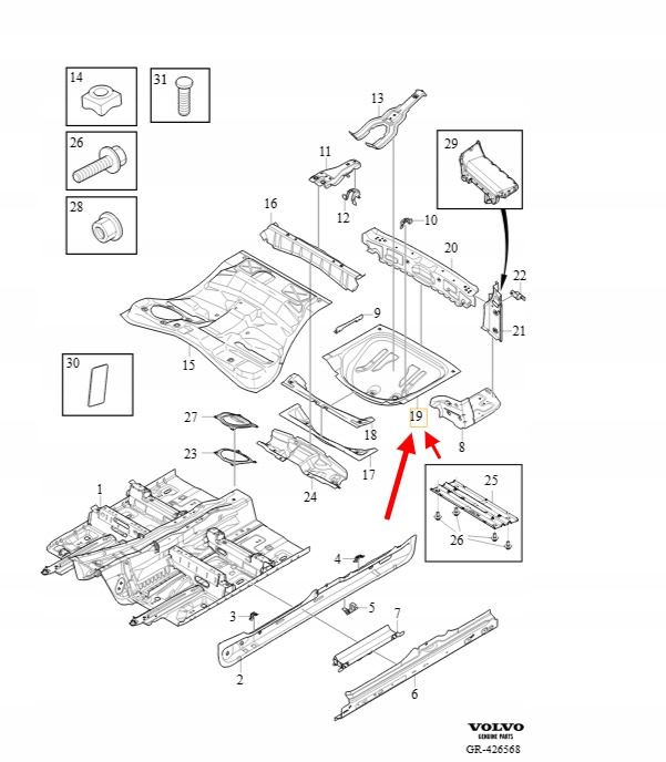 TYLNA PODŁOGA VOLVO XC90 2016- OEM/OE 31656545