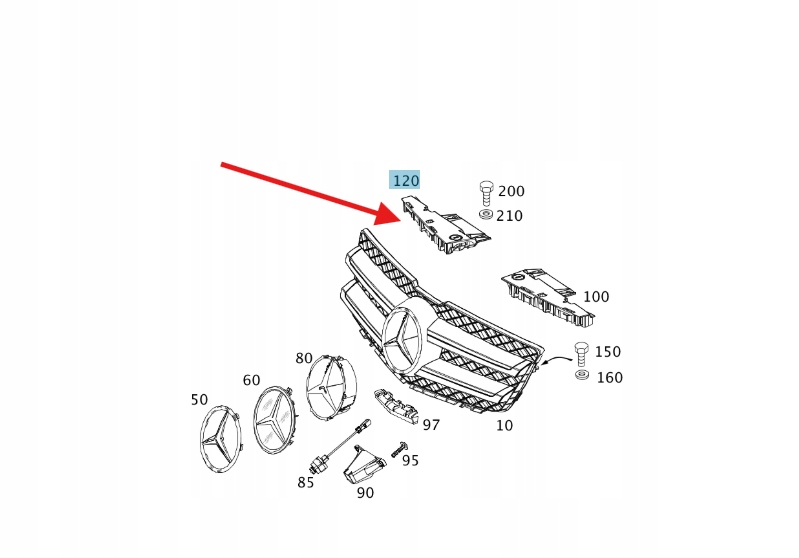 UCHWYT ATRAPY CHŁODNICY MERCEDES C KLASA W204 OE A2048850536