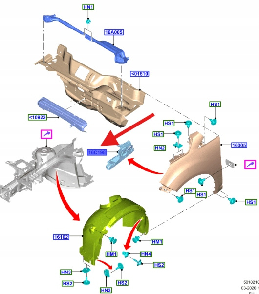UCHWYT BŁOTNIKA PRAWY PRZÓD C-MAX 2010- 2019 OE 1767302 _ PAM51-R16C198-AF