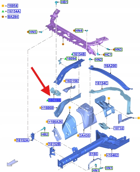 UCHWYT BŁOTNIKA PRAWY PRZÓD FORD MUSTANG 2017- 2255375 _ JR3B-16C198-AD