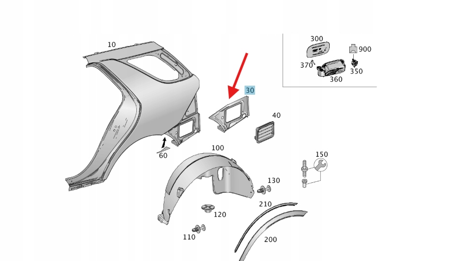 UCHWYT BŁOTNIKA PRAWY TYŁ MERCEDES ML GLE W166 OE A1666372400