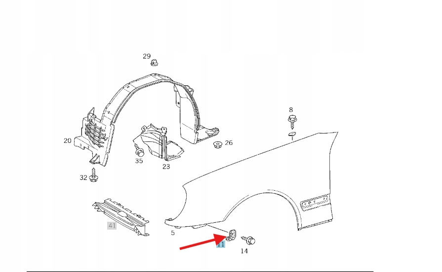 UCHWYT BŁOTNIKA PRZÓD MERCEDES E klasa W210 OE A2108810914
