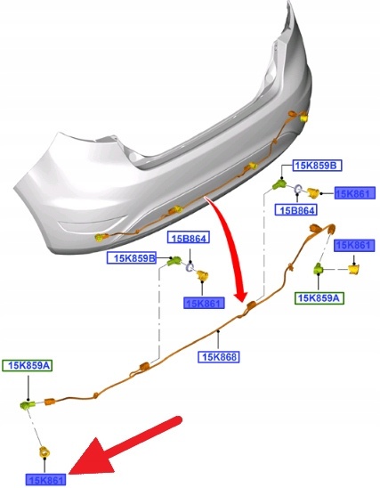 UCHWYT CZUJNIKA PDC TYŁ FORD FIESTA 2012- OE 1818623 _ C1BT-15D851-BA