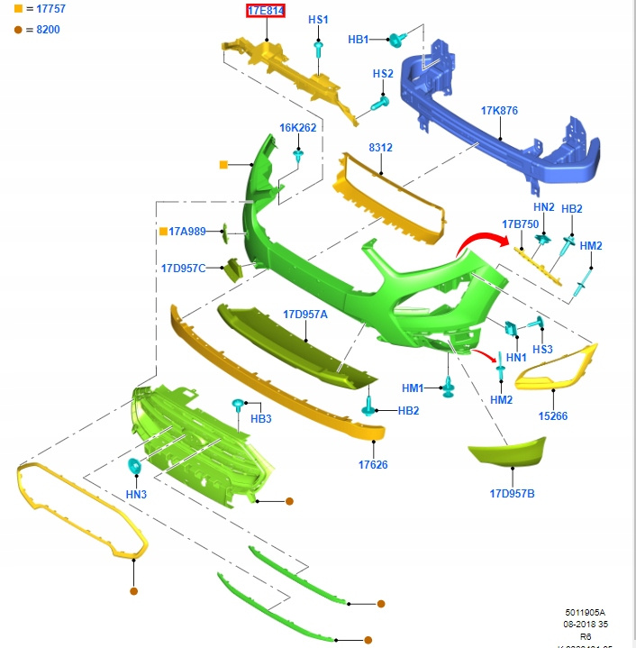 UCHWYT GÓRNY ZDERZAKA PRZÓD FORD ECOSPORT Mk2 2017- _ 2280807 _ GN15-17E778-BD