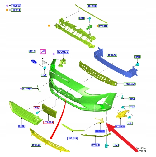 UCHWYT HALOGENU LEWY PRZÓD FOCUS 2018- 2022 OE 2201282 _ JX7B-15A299-A1B