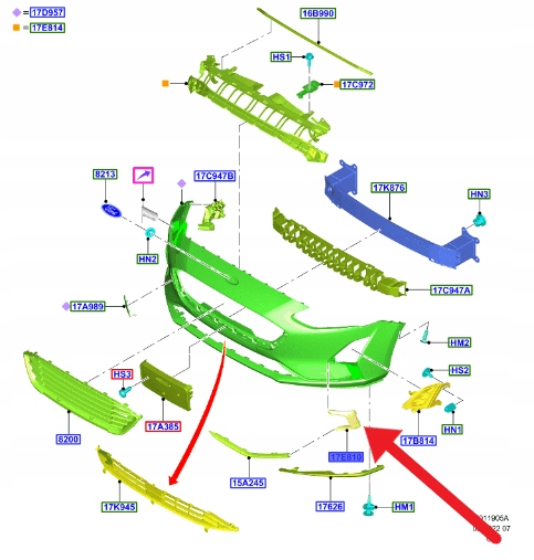UCHWYT HALOGENU PRAWY PRZÓD PDC FOCUS 2018- 22 2529779 _ JX7B-15B216-AA