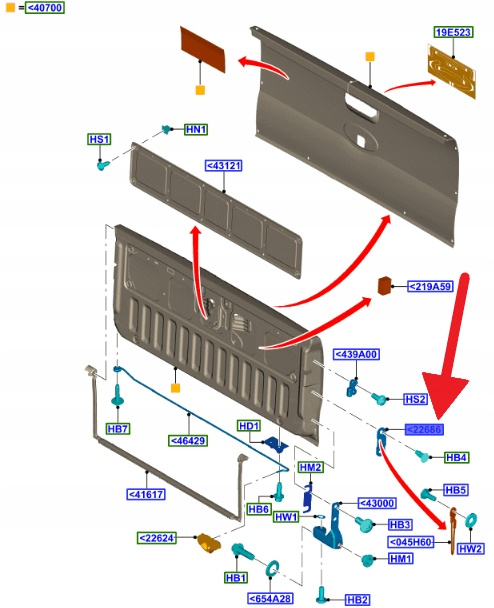 UCHWYT KLAPY TYŁ LEWY PRAWY FORD RANGER 2011- OE 5299258 _ AB39-2144152-AE