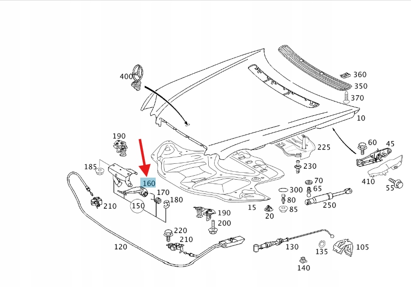 UCHWYT RĄCZKA OTWIERANIA MASKI MERCEDES E klasa W211 OE A2118870327