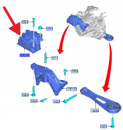 Uchwyt skrzyni biegów - manual VMT6, automat 6F55