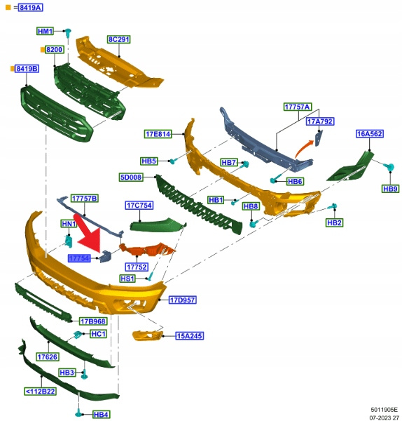 UCHWYT ZDERZAKA PRAWY PRZÓD FORD RANGER 2019- 2283123 _ JB3B-17W996-AB