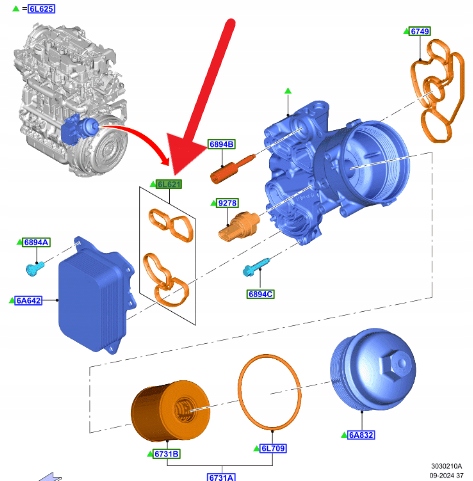 USZCZELKA CHŁODNICY OLEJU 1.5 TDCI PUMA CONNECT 18- 2189427 _ JX6Q-6A646-AA