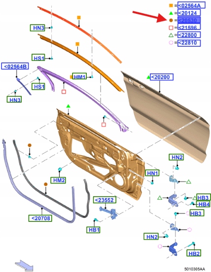 USZCZELKA DOLNA DRZWI PRAWA FORD MUSTANG 2015- OE 5321838 _ FR3B-6320530-AE