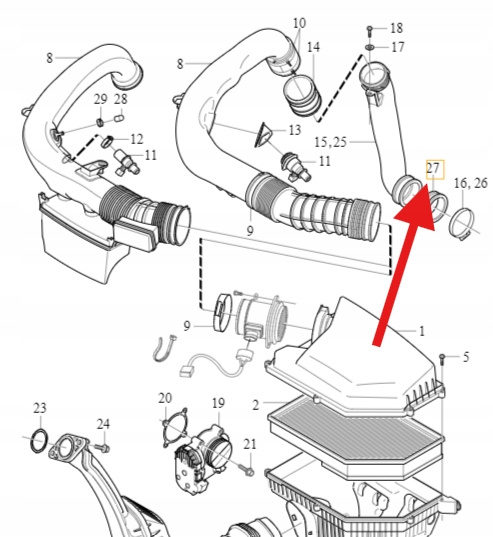 - USZCZELKA DOLOTU PRZEWODU POWIETRZA 2.0 2.4D VOLVO V50 S60 V60 OE 31219708