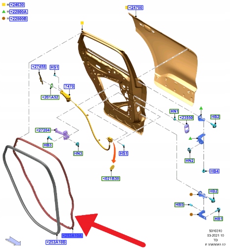 USZCZELKA DRZWI LEWY TYŁ FORD KUGA ESCAPE 2020- 2434299 _ LJ6B-S25325-AA
