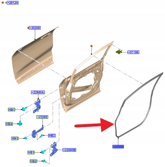 USZCZELKA DRZWI LEWYCH PRZÓD FORD PUMA 2019- OE 2485438 _ L1TB-S20531-AC