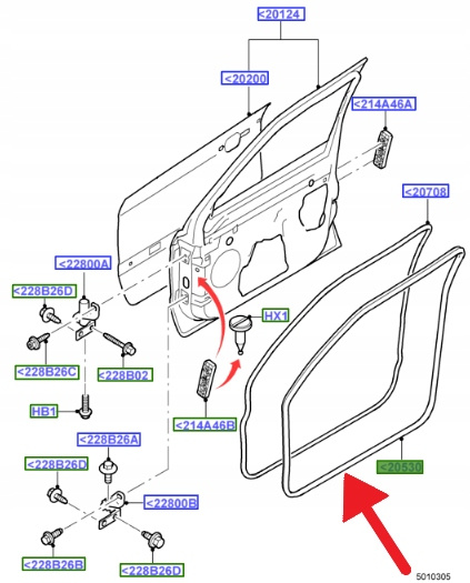 Uszczelka drzwi przednich lewa prawa