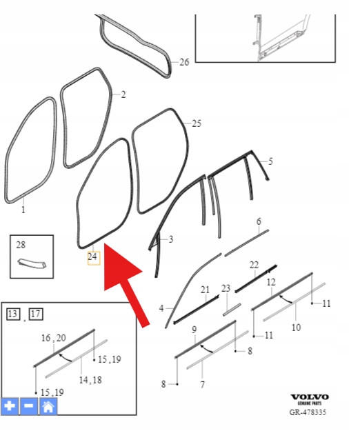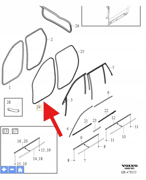 USZCZELKA DRZWI PRZÓD LEWA PRAWA VOLVO XC90 2016- OE 32229247