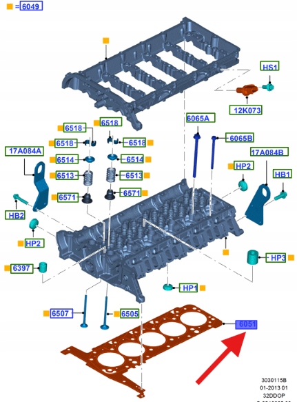 USZCZELKA GŁOWICY CYLINDRÓW 3.2 TDCI RANGER 11- OE 1776504 _ BB3Q-6051-A1B