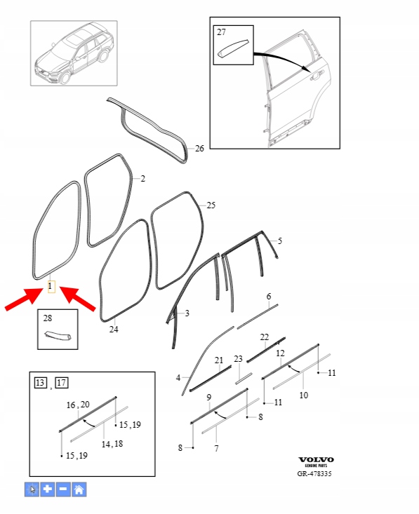USZCZELKA KAROSERYJNA DRZWI PRZEDNICH VOLVO XC90 2016- OEM/OE 32342436