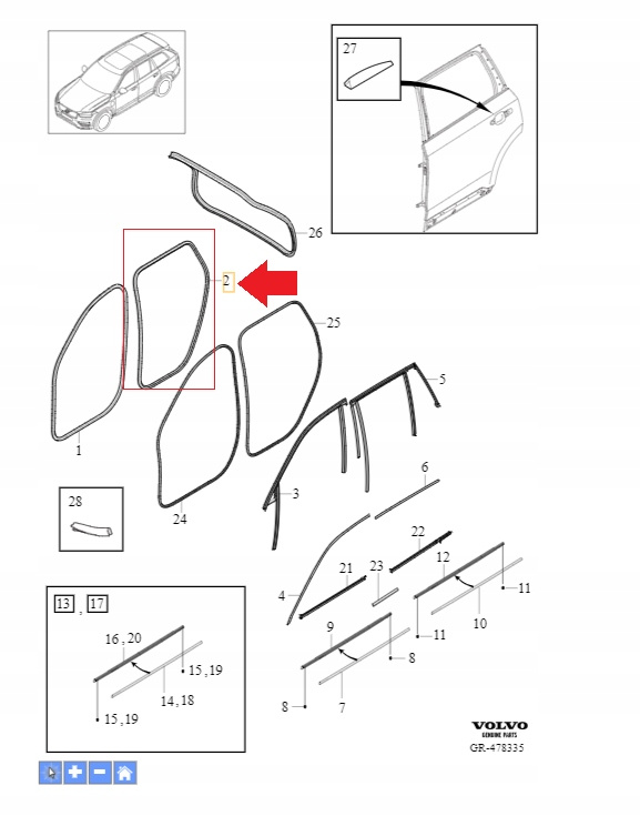 USZCZELKA KAROSERYJNA DRZWI TYŁ VOLVO XC90 2016- OEM/OE 32342437