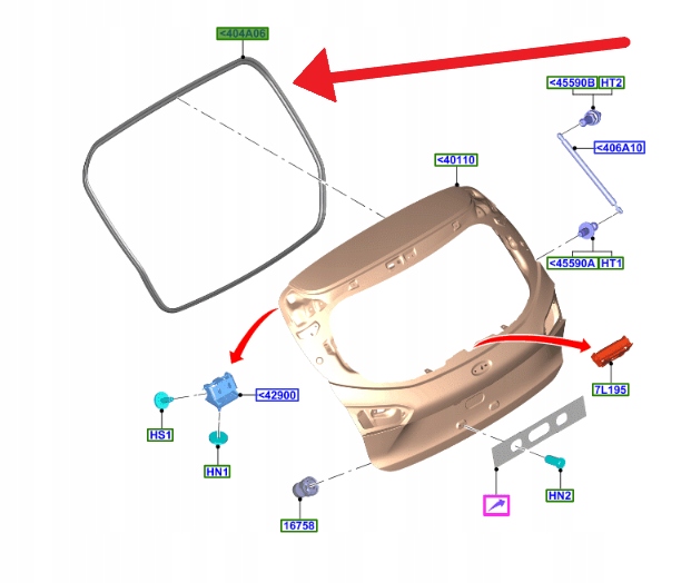 USZCZELKA KLAPY FORD FOCUS HATCHBACK 2018- OE 2428494 _ JX7B-A404A07-BG