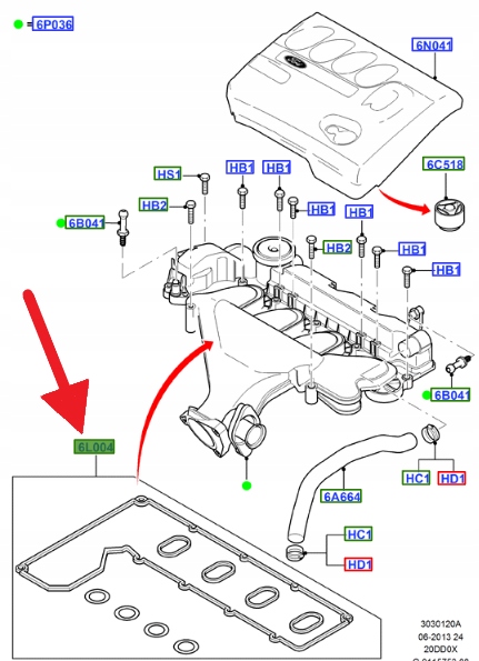 Uszczelka kolektora dolotowego Diesel 2.0L TDCi