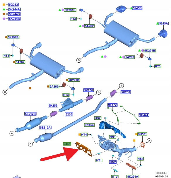 USZCZELKA KOLEKTORA WYDECHOWEGO 2.5L KUGA 2020- OE 2414068 _ LX68-9448-AA